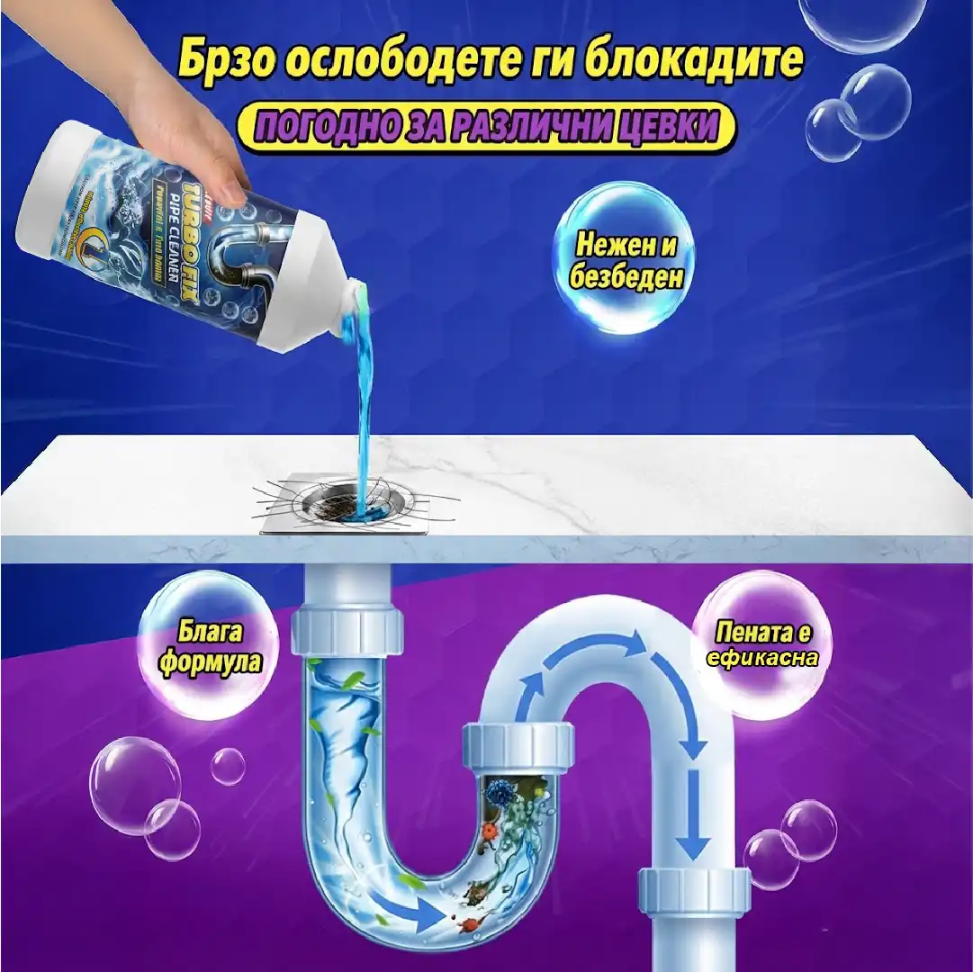 Неговата формула е безбедна за повеќето видови цевки и инсталации, што го прави идеален за редовна употреба во секој дом.