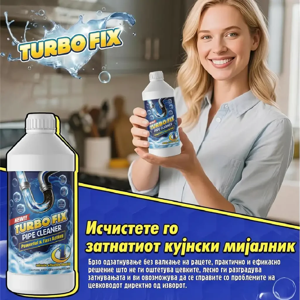 ✅ Со Turbo Fix добивате брзо и ефикасно решение за затнати одводи. Моќната формула ги разградува наслагите, го враќа нормалниот проток на вода и ви заштедува време и пари – едноставно решение за чисти и функционални одводи.